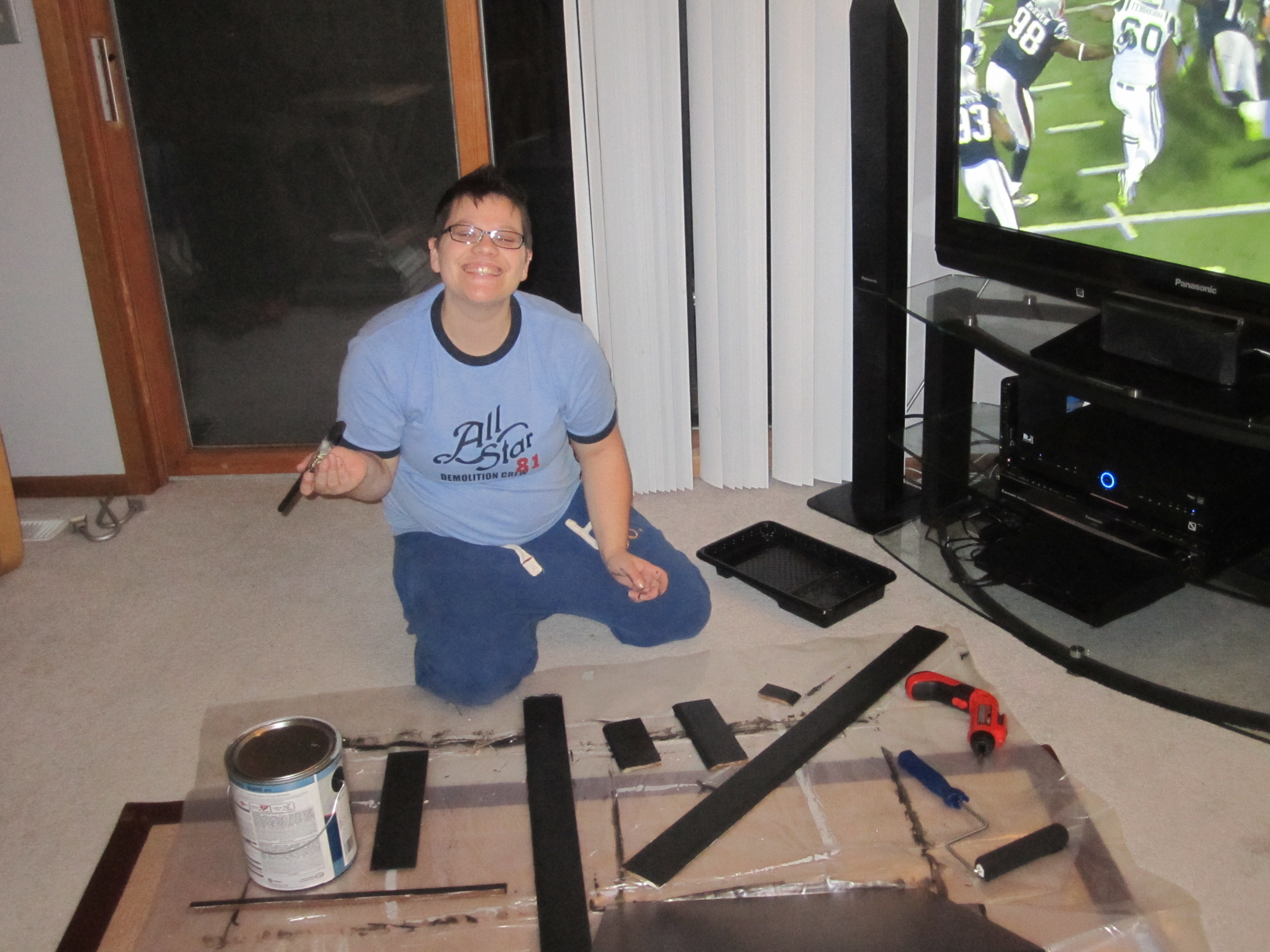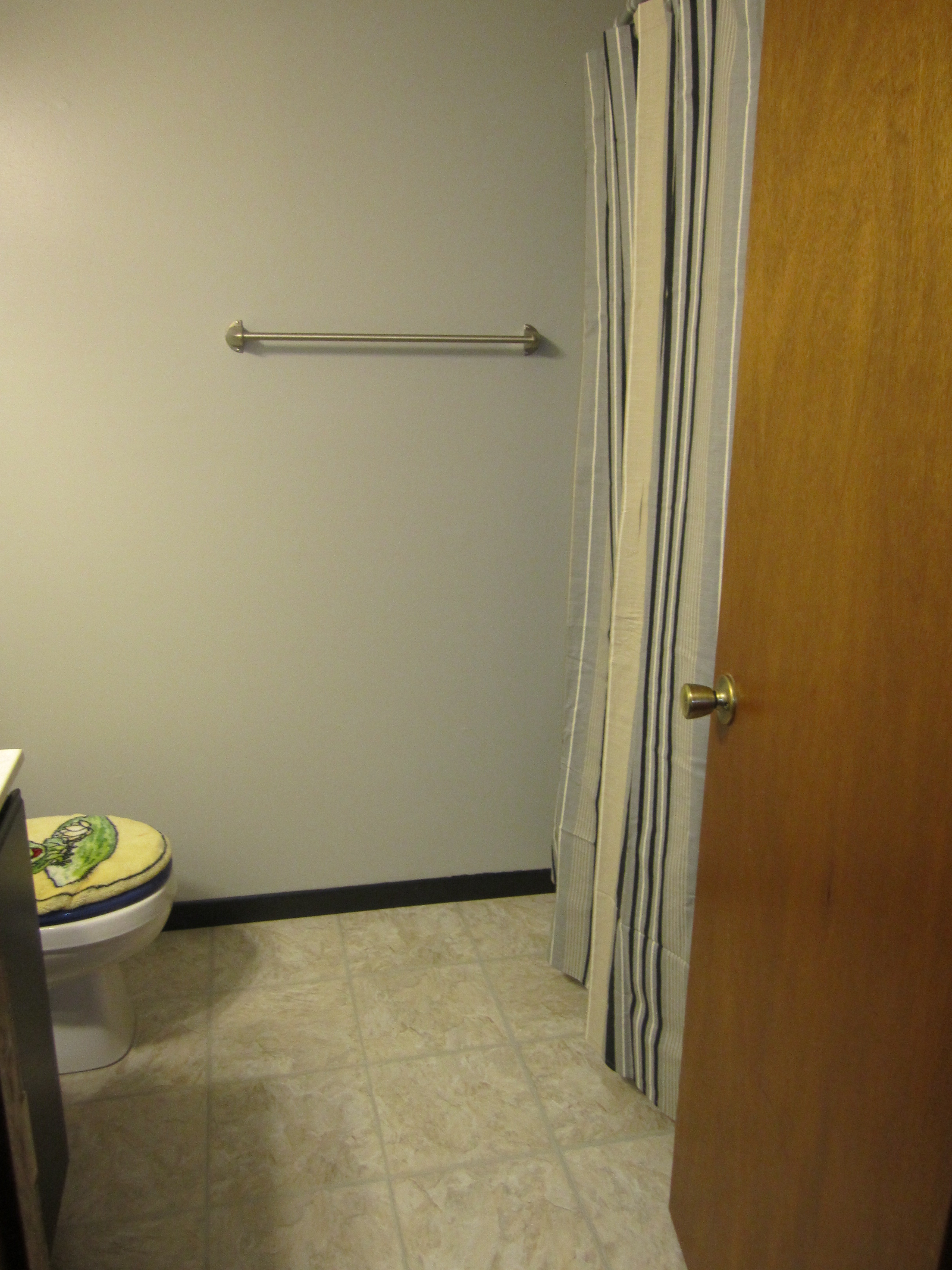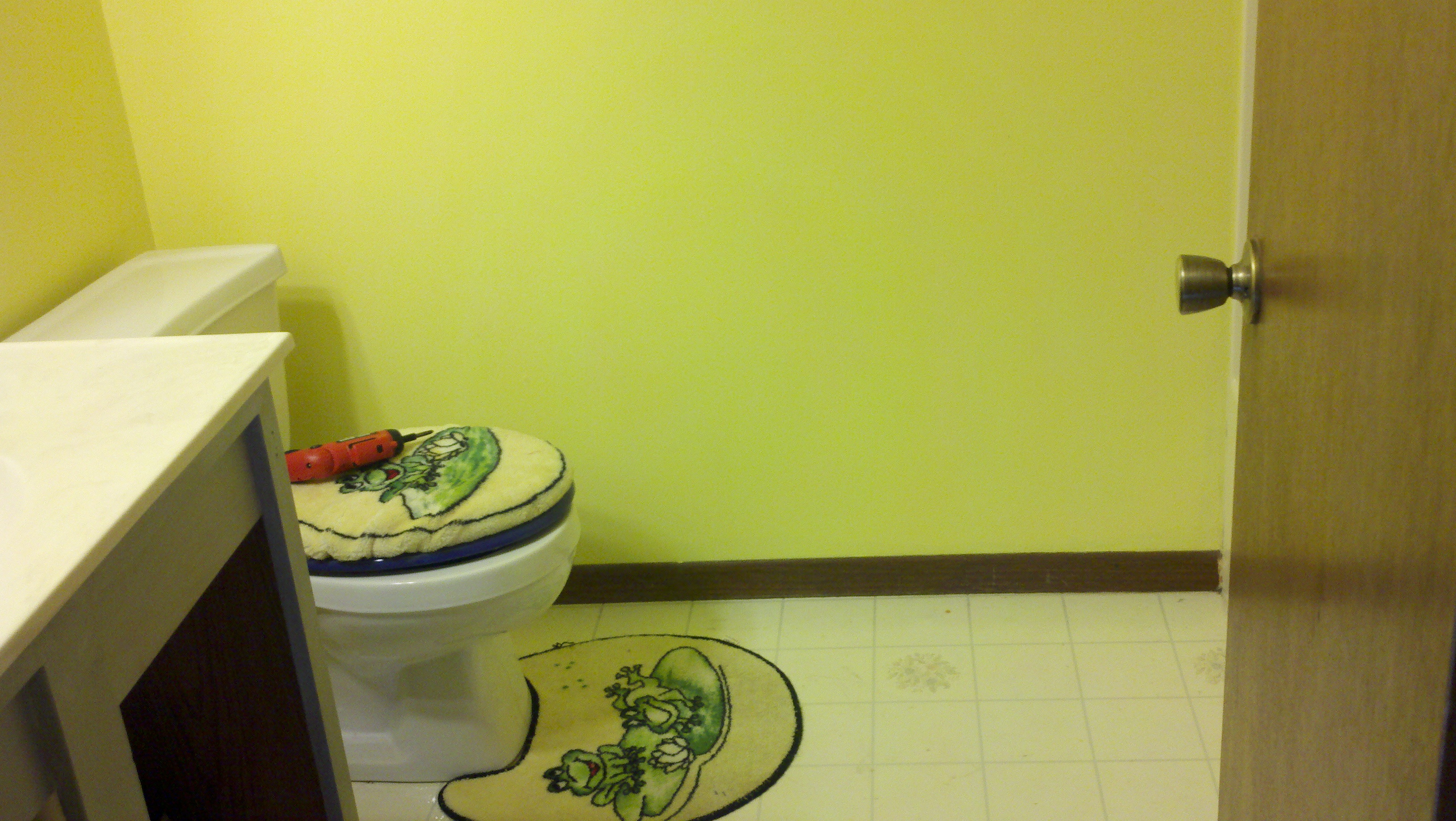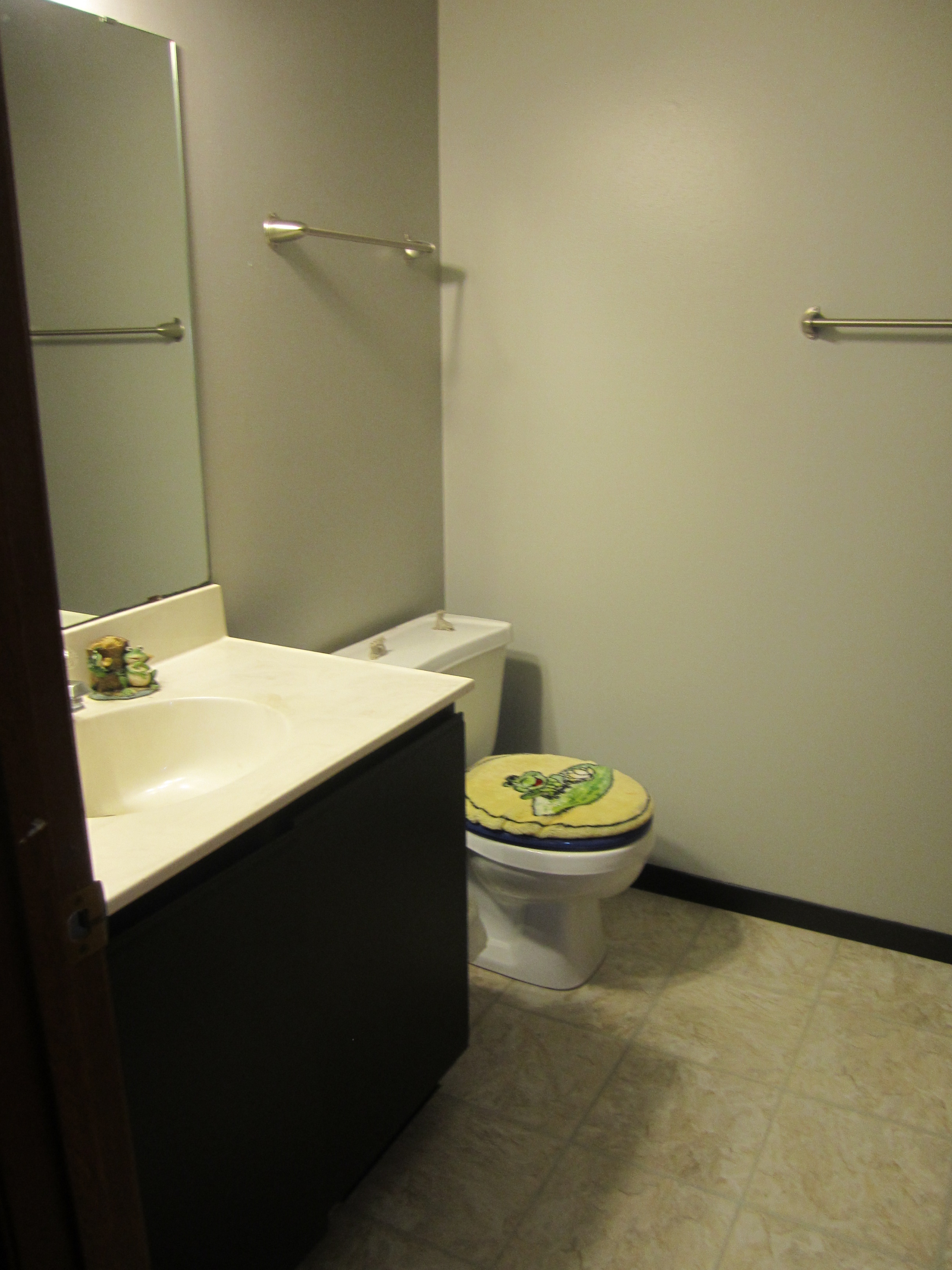 Last weekend Jeanna had both Saturday and Sunday off of work and she chose to use her free time to remodel our upstairs bathroom. I cannot believe what she did to it, before it had old linoleum flooring, bright yellow walls and brown cabinets. It now has a nice new coat of paint, brand spanking new flooring and black cabinets!! She really is amazing, I have no idea how she does this sort of thing and I sure as heck am not going to complain, haha!! I love her and how amazingly creative she is!!