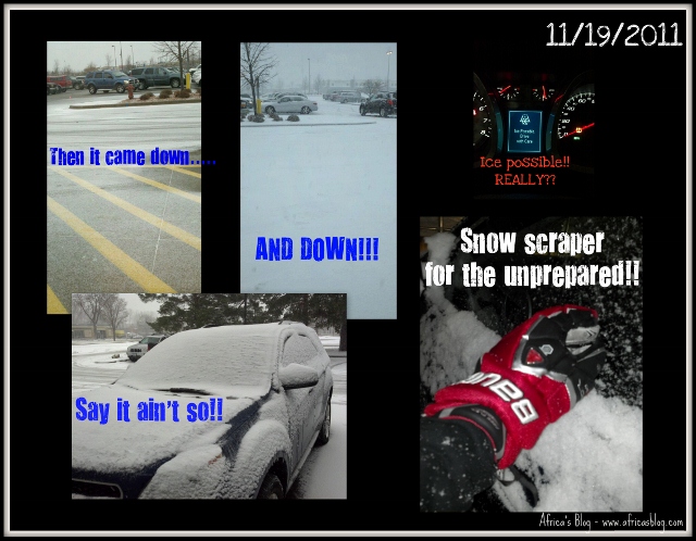 Today I got to the rink around 10:30am and there was no snow as yet, and it wasn’t very cold out, not for November anyways. I left around 2:30pm and………..well take a look at the tacky photos I took on my phone 🙂