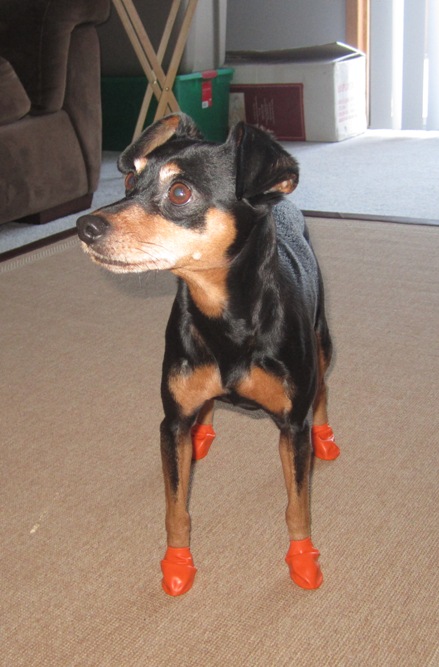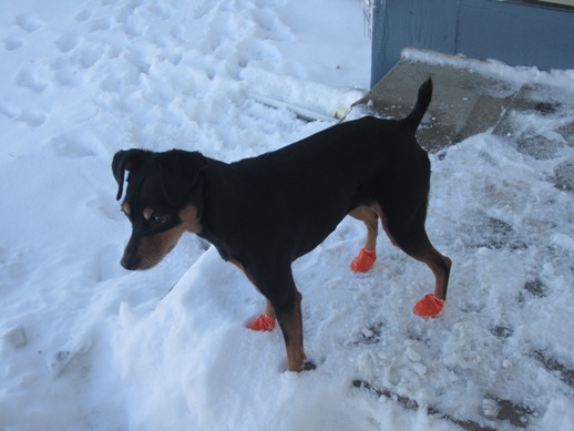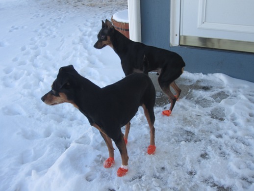 I highly recommend Pawz Dog Boots for your dogs, no more loosing expensive booties in the snow, grass, bush, etc. Pawz Dog Boots come in numerous sizes so there is a pack that will work for your “best friend”. They come with 12 booties in a package, are disposable and NOT expensive. They can be purchased at numerous stores throughout the USA, check the STORE LOCATOR page on their website.