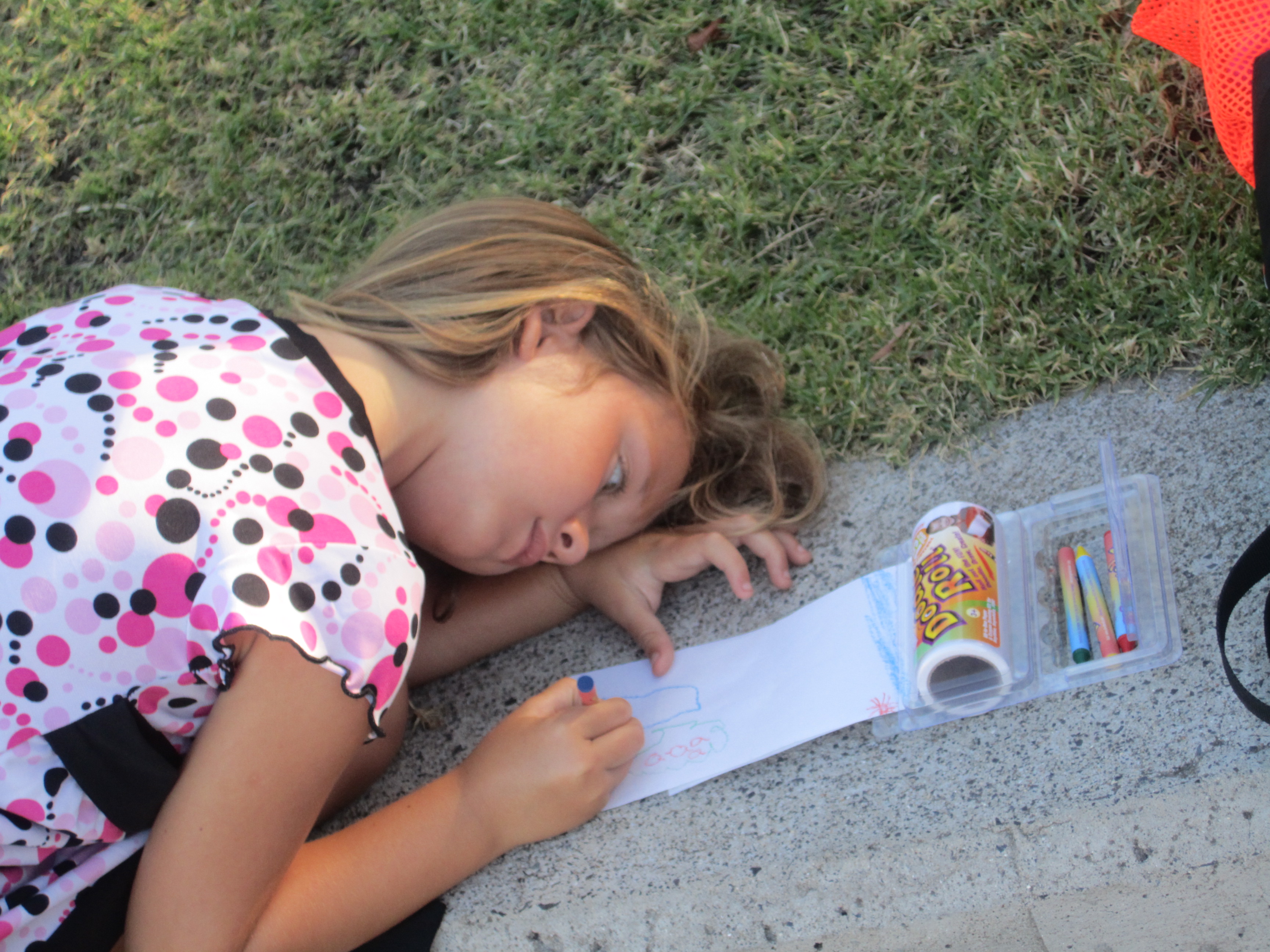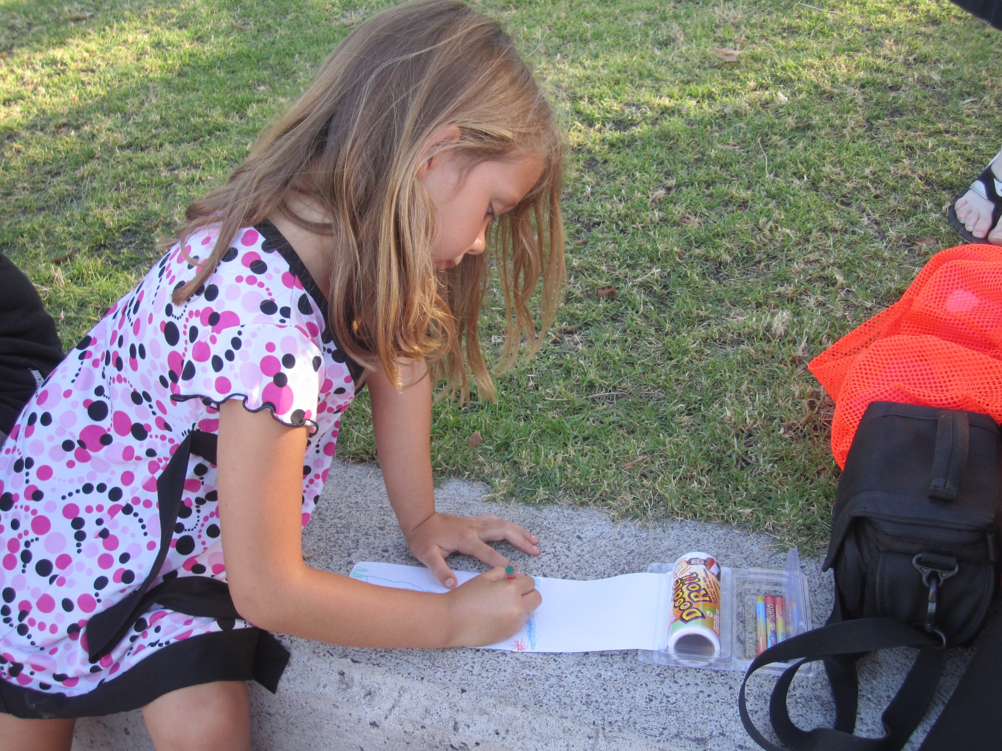 The Doodle Roll was a big hit with little Jenna (5), who used it to entertain herself while her big sister, Kayla, had swimming practice. The packaging is so easy to use that Jenna was more then able to use it all by herself.