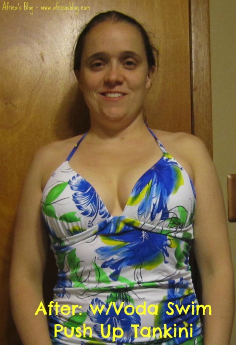 The awesomeness of this tankini continues – due largely to the patent-pending Envy Push Up bikini top created by international model Yulia Drummond. The top visually increases the bust size by up to two cup sizes, without looking like a push-up – as I said earlier, when I feel self-conscious I can cover up more by choosing the tankini option, this self-consciousness extends to the ‘bust’ region, hehe!! I don’t want it to be obvious that I am wearing a push up, I get very shy!! BUT these tops don’t do that, they don’t make me feel self-conscious like I had some ‘work’ done overnight 🙂 I LOVE IT!!!!! This is my ONLY “push up” anything and I have absolutely no complaints!! See the before and after comparison pictures below (don’t judge my photography skills, LOL!)