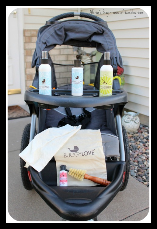 I was looking online for some natural cleaners to clean up her high chair after the disaster and came across BuggyLOVE Organic Stroller Cleaning Kit.