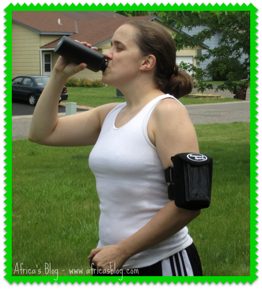The 16 oz. BPA free water bottle is a smooth durable design that fits snug in the armband for easy access. The armband itself is super adjustable so both Jeanna and I can use it. The lightweight armband includes a thin detachable pocket to hold my ipod and the garage clicker so I don’t have than bouncing in my pockets or better yet weighing my shorts down to my ankles! 🙂