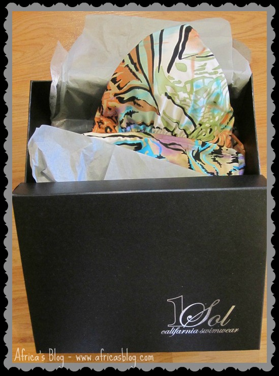 I was fortunate enough to be able to review the Vivi One Piece (in Mystic Mayan color) swimsuit from 1Sol Swimwear!! It came packaged in this super fun box: