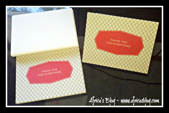 Pear Tree Greetings has so many unique designs to choose from it took nearly an hour to decide on what we wanted to try! Jeanna and I chose the Happily Hexagon Thank You Card because it was black and red (our favorite colors) and can be used for anytime we needed.