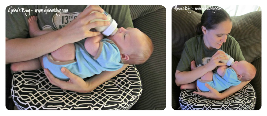The pillows design is perfect for any baby. You can rest them on either side of the pillow in whichever is most comfortable for baby. Blake prefers to feed on his right side, so whether feeding from a bottle or feeding from the breast he can lay comfortable on the pillow… oh and Mom and babysitter Debbie are comfortable too!