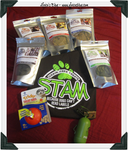 Are you ready to get your four legged friend hooked on the BEST HOMEMADE treats out there?? STAM treats is giving you a chance to win a STAM Treats gift basket valued at over $70, including 5 packages of treats, a STAM T shirt, a treat ball and a roll of ‘poop’ bags,(pictured below) just enter using the Rafflecoptor below.