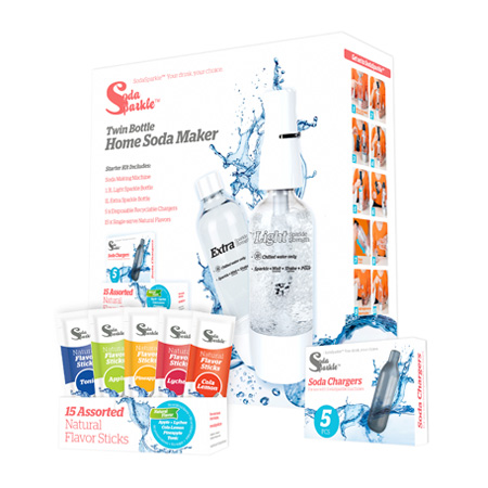 SodaSparkle is an at-home soda maker that allows you to make your very own soft drinks using your chilled tap water. You control the fizz of the soda you make and the flavors that go into each glass!
