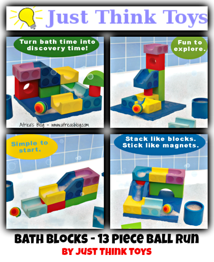 You can purchase the 13 piece ball run bath blocks set at the Just Think Toys website by clicking HERE, for just $14.99 and of course you can buy Bath Blocks on Amazon. While you’re on their website make sure to check out all the other amazing products they offer, you won’t be disappointed.