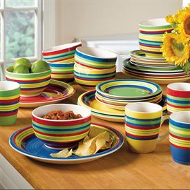The 16-piece Santa Fe Hand-Painted Striped Stoneware Dinnerware is a