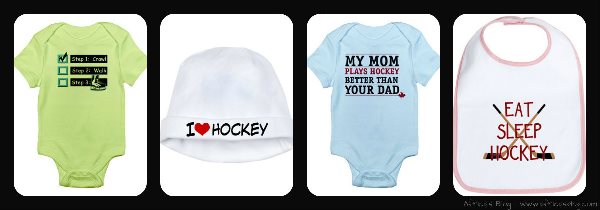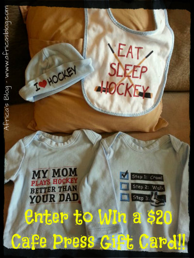 I think my readers know about my deep love of the game of hockey, and that I am currently expecting our first child. Therefore, when I was given the chance to review products from CafePress I jumped at the opportunity to order personalized baby products that were hockey related. As I expected, there was NO shortage of hockey related products, my biggest problem was this – which items do I pick, a good problem to have!!
