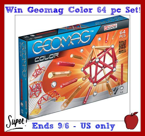 One lucky winner will get this fun Geomag Color 64 piece set! ($43 arv)