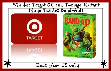 One lucky winner will get an assortment of Band-Aids including the new TMNT Band-Aids and a $25 Target gift card for purchasing any additional first aid products to help keep your family well-stocked for the back to school season!