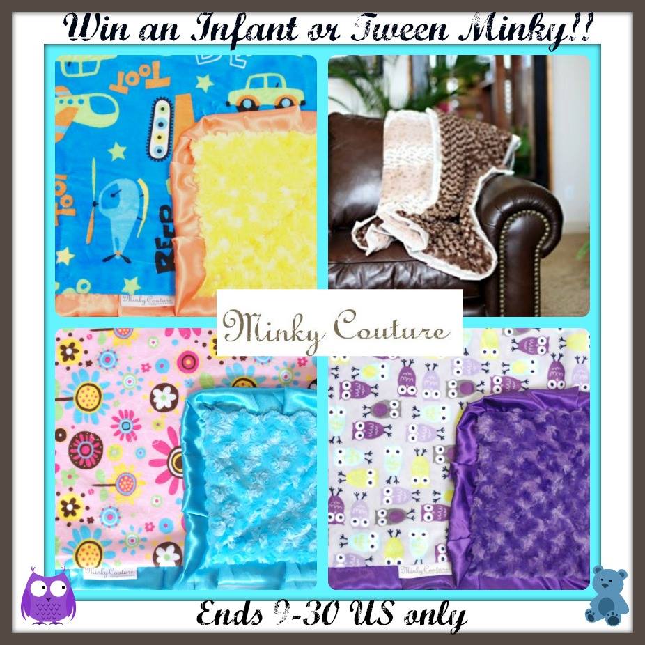 One lucky winner will get an infant or tween size Minky. Winner can request a boy or girl print, Minky will send the pattern of their choice.
