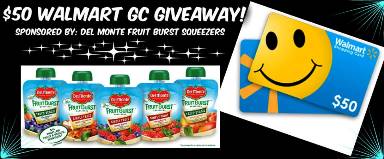 Now, are you ready to win? Del Monte has given us the amazing opportunity to give away a $50 Walmart Giftcard to one of our lucky readers! That’s right, a $50 giftcard! That will be sure to buy you a whole bunch of Fruit Burst Squeezers! Enter using the rafflecopter below, open to USA residents and 18+ years old.