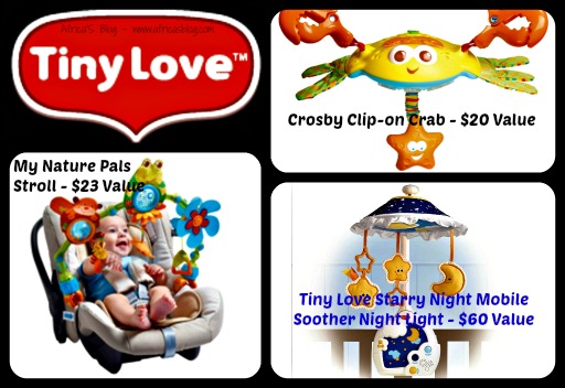 Now I am really excited to let you know that you can enter to WIN a Tiny Love prize package – consisting of THREE Awesome Prizes!! Tiny Love Starry Night Mobile Soother Night Light – $60 value, My Nature Pals™ Stroll – $23 value, and Crosby Clip-On Crab – $20 value – that’s over $100 value!!