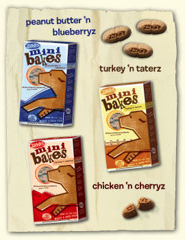 Thank goodness Zuke’s is sold at most PetSmart stores. We recently discovered the new Zuke’s Mini Bakes, healthy delicious miniature dog biscuits. So instead of a stale, nutrition-less dog biscuit, Mini Bakes are crunchy, delicious, and fun flavored. Each nutrient-packed biscuit begins with ground oats (not wheat or corn) and is enhanced with a scrumptious protein source plus a nutritious addition of potatoes, blueberries or cherries! Tanner loves the peanut butter and blueberriez biscuit while Logan seems to prefer the chicken and cherriez. Either treat is fine by me, these Zuke’s Mini Bakes only pack 5 calories each so Tanner and Logan can stay MINIATURE Pinschers 🙂