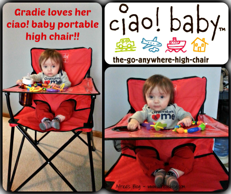 Now, if you’d like to see your little one in their own ciao! baby Portable High Chair, like little Gradie is in the pictures above, make sure you enter to WIN one. The fantastic people over at ciao! baby have been kind enough to sponsor a giveaway for the readers of Africa’s Blog, to WIN a Portable High Chair of your own, a $68 value, winner picks color (black, chocolate, orange, sage, red, blue, purple, or navy)!!