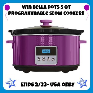 Winner will receive a BELLA Dots Slow Cooker – Programmable Slow Cooker, 5-Quart!!
