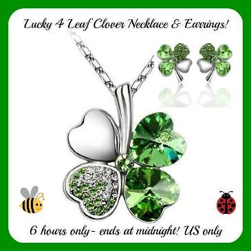 One lucky winner will get both the Lucky 4 leaf Clover Necklace and the Earrings!