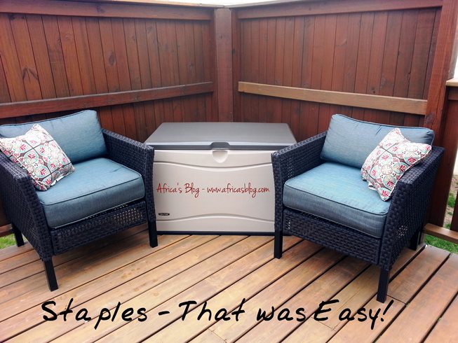 Confession… after Jeanna showed me the selection for G’s room I kept shopping. I couldn’t help it Staples.com has some killer sales right now. I kept clicking and clicking and I found an awesome deal on a Deck Storage box just in time for grilling season!