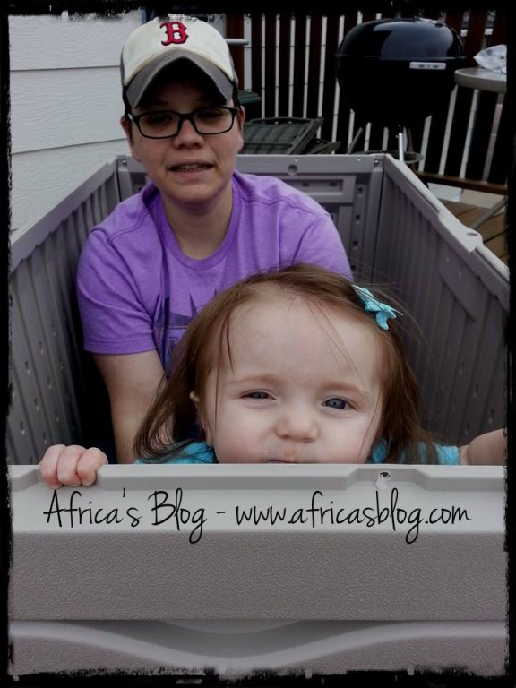 Since G was born in July she didn’t really spend a lot of time outside since we have winter 9 months out of the year here in Minnesota. Jeanna and I got a new patio seating set last year and are super excited to finally use this year and play with Ms. G on the deck and start teaching her what a Minnesota summer is! The deck box was super easy to piece together even G helped Mama Jeanna, look below.