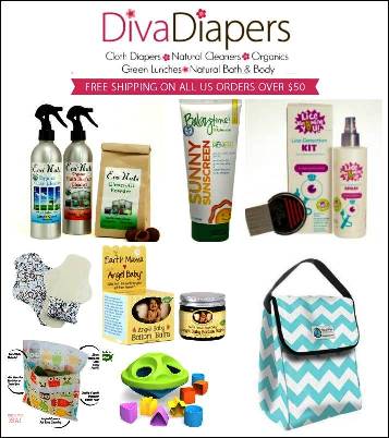 Diva Diapers new store offers more than just cloth diapers and accessories. They also have green toys, environmentally friendly lunch supplies (perfect for back-to-school), natural home products, and green products for mom. Stop by the new store and do some window shopping to see what you will get if you win! Signup for their Newsletter while you are there to receive 10% off + FREE shipping on all future orders!