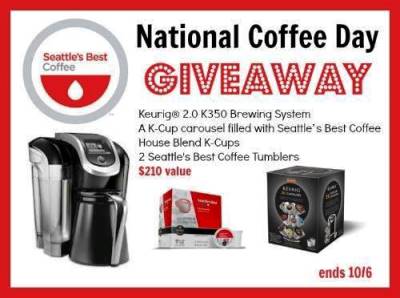 Today, September 29th, is National Coffee Day and I thought you all would love to celebrate with another HUGE Giveaway! How does a brand new Keuring sound? Thanks to Seattle’s Best Coffee – one lucky reader will win: