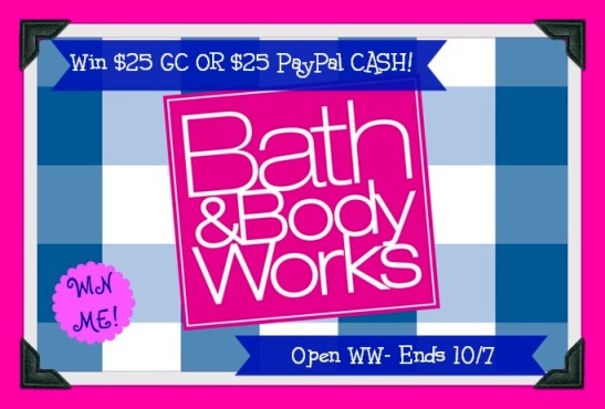 I have joined together with a few of my FAVORITE blogger friends to bring you this great Giveaway! Who loves Bath & Body Works? You can win a $25 Gift Card to Bath & Body Works OR get $25 USD PayPal Cash, the choice is YOURS!! Just make sure you enter to WIN!!!
