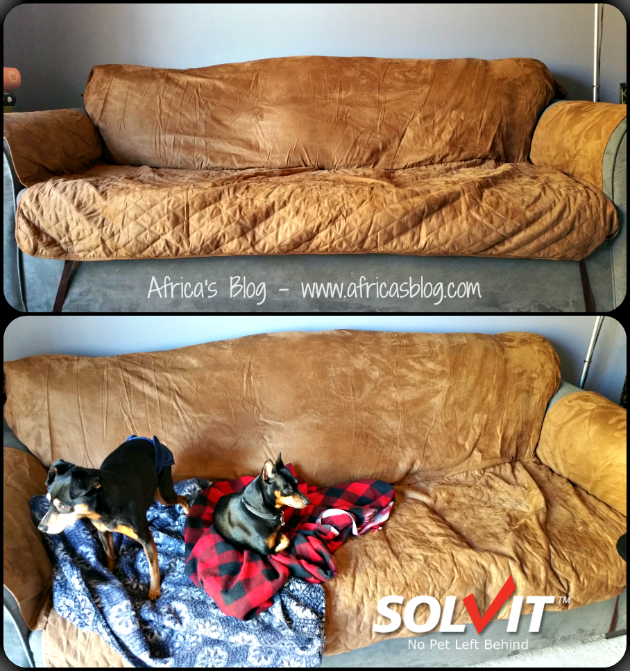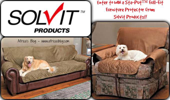 Our dogs are part of the family, right? I know they are in my house and they love sitting up on the couch with us. This has never been a problem in the past, but as they have aged, Logan has unfortunately started having some bladder control issues, which has lead me to look for a way to protect the couch, in addition to the diaper she now wears. That is how I found the Sta-Put Furniture Protectors from Solvit Products.