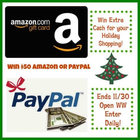 Win $50 Amazon or PayPal CASH for your Holiday Shopping!!