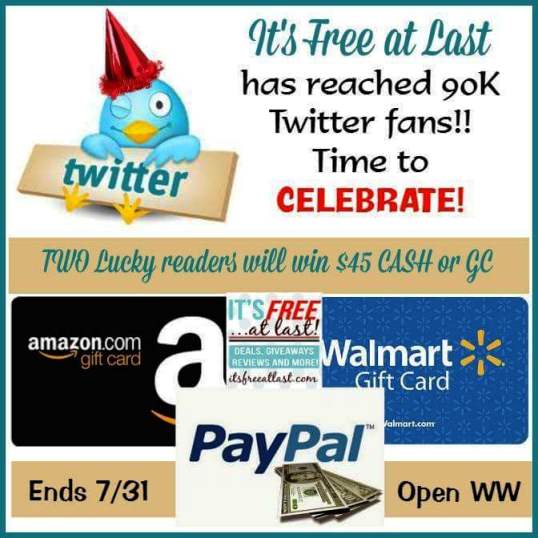 Two winners will receive their choice of $45 Walmart (e-gift card), Paypal or Amazon! (Ends 07/31/15)